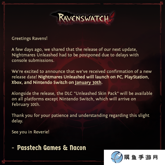 近日,roguelike 动作游戏《鸦卫奇旅》官方宣布,此前被推迟的“梦魇释放”(Nightmares Unleashed)更新将于1月20日正式上线,登陆PlayStation、Xbox、Switch和PC。