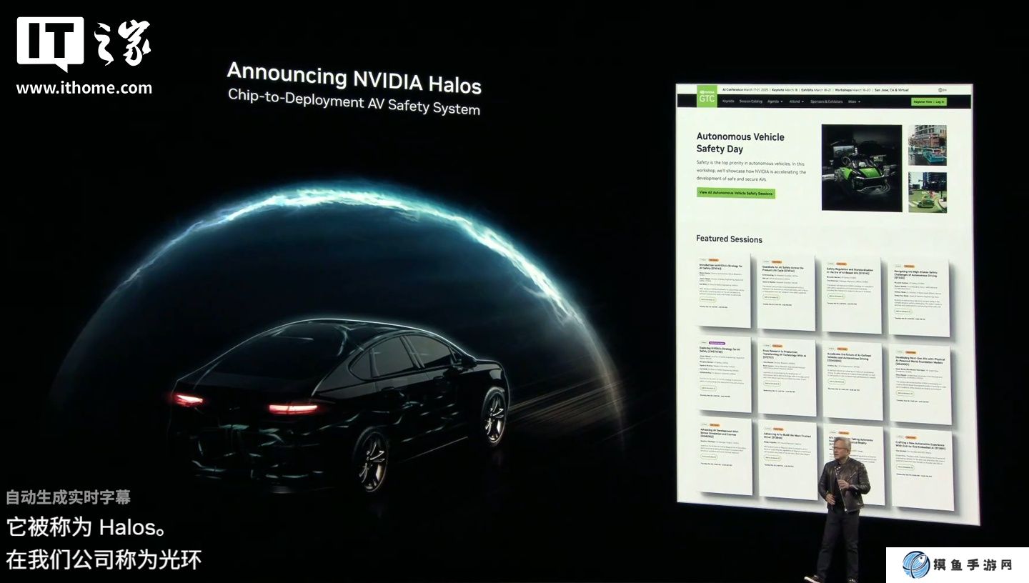 黄仁勋还宣布了 NVIDIA Halos,这是一个专注于汽车安全的 AI 解决方案,并称“我们是世界上第一家对每一行代码进行安全评估的公司”。