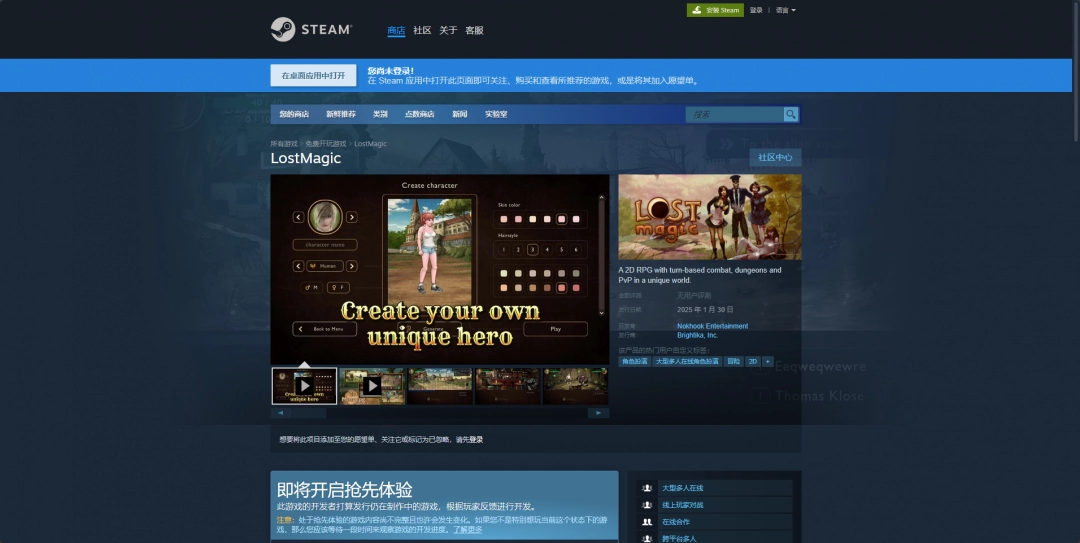 Steam平台购买链接:https://store.steampowered.com/app/3220170/LostMagic/。