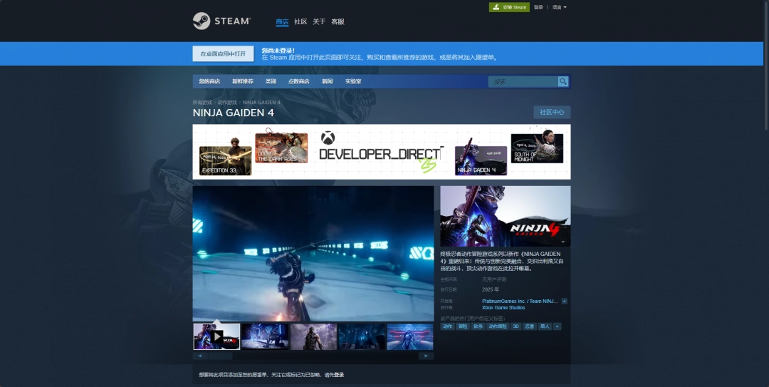 《忍者龙剑传4》是由忍者组与白金工作室合作开发的动作冒险游戏,而这款游戏的官网地址就是Steam平台的购买页面,进入到这个游戏的购买页面基本上就能知道所有这款游戏的信息。