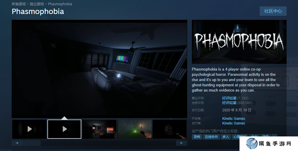 1、恐鬼症是一款可以连接的合作抓鬼游戏,大家可以在steam上找到这款游戏。