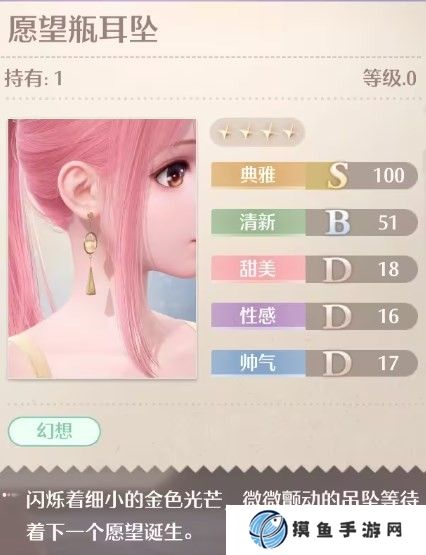 愿望瓶耳坠是游戏中的一件装扮,是一件耳坠。