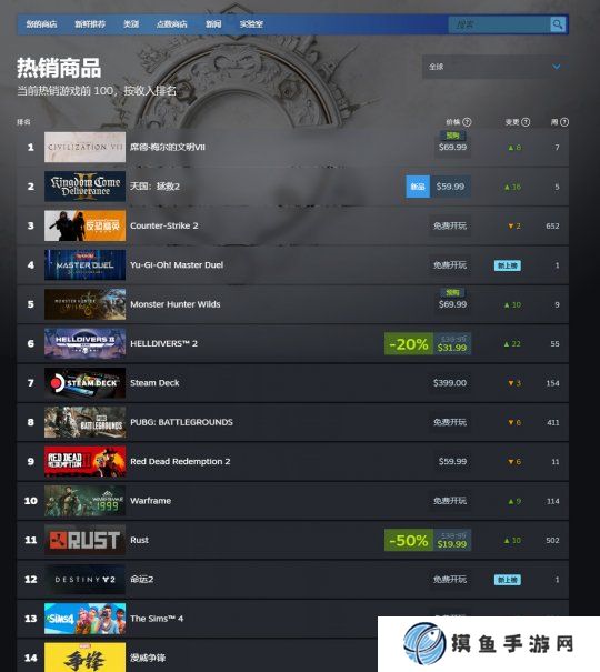 《天国:拯救2》目前在Steam全球热销榜上位列第二名,仅次于《文明7》。