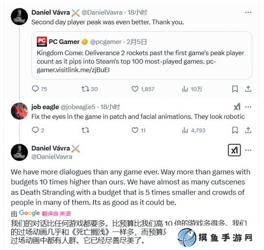至于《天国:拯救2》的预算, 今年2月6日Daniel Vavra在X上和玩家互动时似乎给出了暗示。
