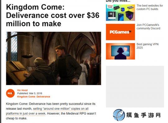 《天国:拯救2》预算仅4000万美元 发售1天就收回了成本