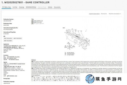 据了解任天堂在2023年8月1日提交了这些围绕着Joy-Con手柄的专利,并在2025年2月6日得到了审批。专利主页的简略说明提到的是Joy-Con全新的磁吸式连接方式,说明中提到:“该游戏控制器可拆卸地安装在具有凹槽的主体设备上,该凹槽包括第一磁铁和凹槽底部的第二磁铁,可以执行游戏处理。”