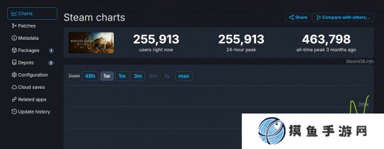 根据SteamDB数据,《怪物猎人:荒野》第二次BETA公测当前同时在线25.5万人,仍在继续增长中,第一次BETA公测的峰值为46.3万人。