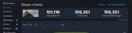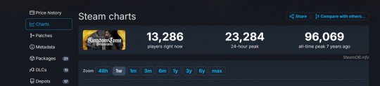 在线人数方面,《天国:拯救2》Steam同时在线玩家接近16万(159351),是1代游戏《天国:拯救》(96069)的1.65倍。