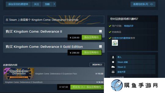《天国:拯救2》Steam现已推出,国区标准版228元,黄金版298元,自带简体中文,没有D加密。首发一天,Steam上累计近3000条评价(2874),好评率高达93%,为“特别好评”。