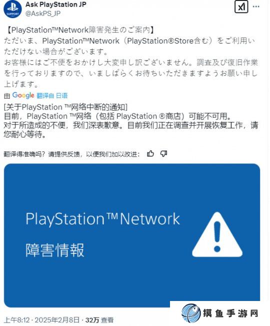 索尼官方已发布消息:“PlayStation网络目前已不可用。对于所造成的不便,我们深表歉意。目前我们正在调查并开展恢复工作,请您耐心等待。”