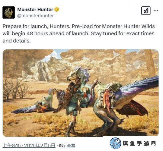 根据卡普空官方透露,《怪物猎人:荒野》预加载将在游戏发售前48小时开始,考虑到游戏将在2月28日发售,所以数字版的预加载可能在2月26日开启,更多预加载的具体时间和详细信息将在之后公布,