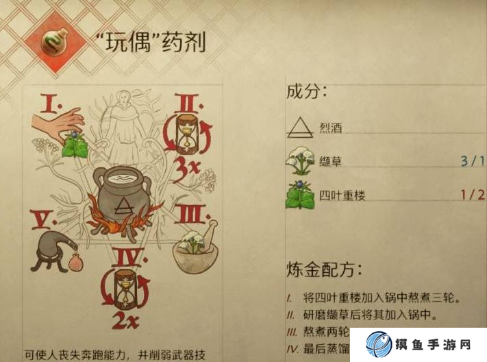 玩偶药剂:使奔跑变得不可能,减少武器技能,并减少生命值。