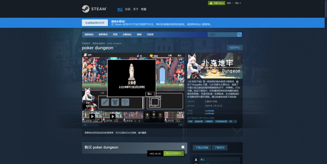《扑克地下城》在Steam平台有标准版,售卖价格是港币26元。